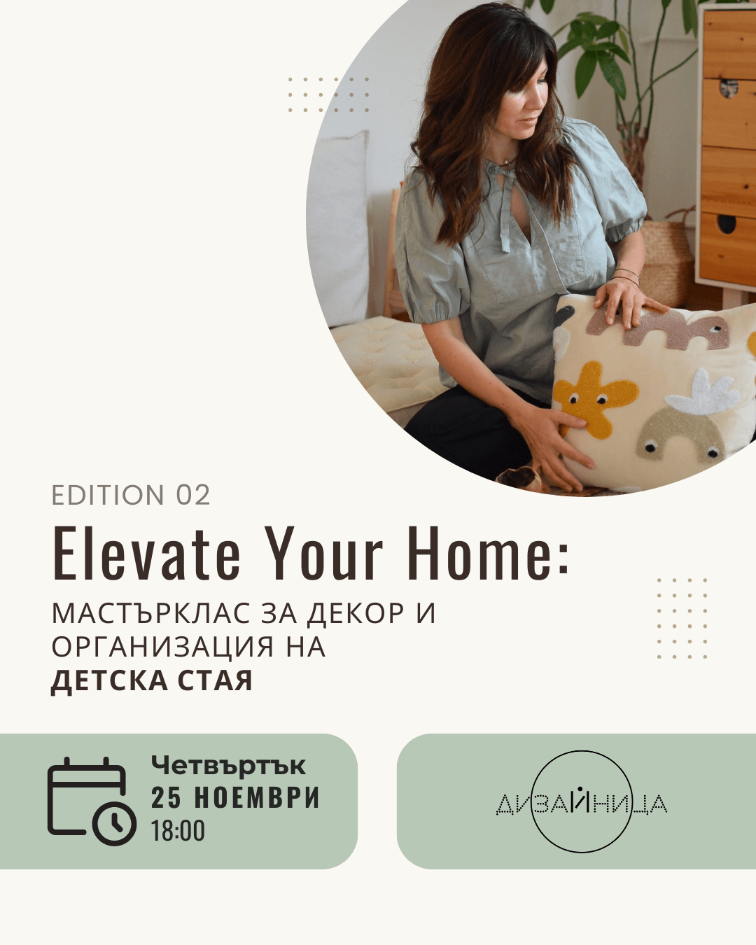 Този Мастърклас е практическо ръководство, което ще ви помогне да направите съзнателни избори за детската стая, така че тя да бъде красива, здравословна и в хармония с нуждите на вашето семейство.