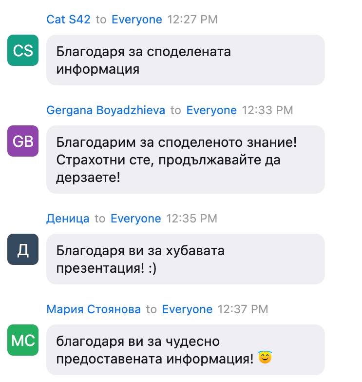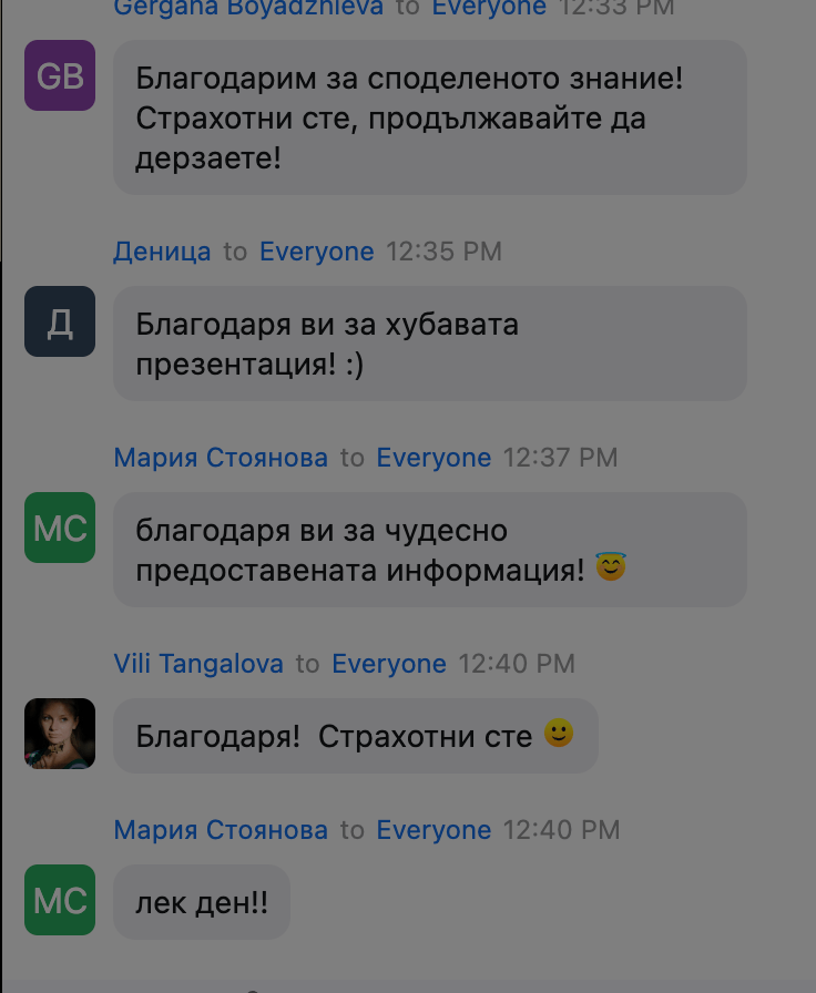 Благодарим на всички, които се включиха и споделиха своите мисли. Това направи срещата още по-ценна за всички.